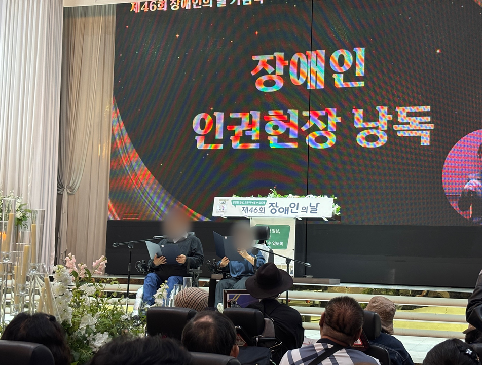 해마다 4월 20일로 지정된 장애인의 날을 기념하여, 14일 아산터미널웨딩홀에서 ‘제46회 장애인의 날 기념식’이 개최되었습니다. (사)충남지체장애인협회 아산시지회 주최로 아산시 사회복지 관련 기관장 및 시설장, 시·군 장애인단체장, 아산시 장애인 가족들이 참석하였습니다. 장애인성폭력아산상담소에서는 지난 1년간 진행한 프로그램을 통해 제작된 작품들을 전시하였습니다. 올해 기념식 슬로건은 “당연한 일상, 모두가 누릴 수 있도록”으로, 장애인의 일상적 권리 보장과 사회참여 확대의 의미를 담고 있습니다.