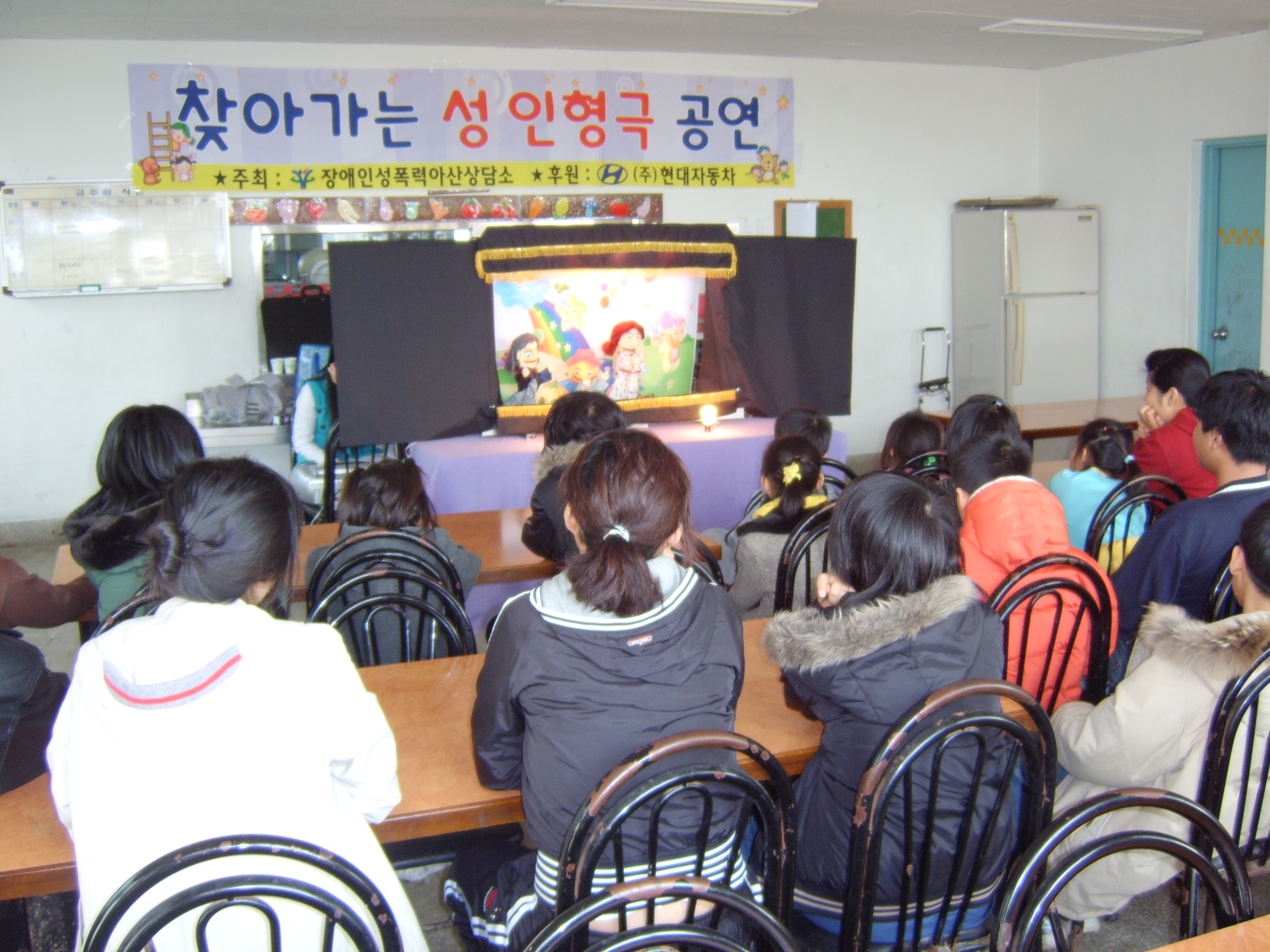 저희 장애인성폭력아산상담소는 (주)현대자동차의 지원으로 충청남도내 장애인복지관 및 생활시설을 대상으로 찾아가는 성 인형극을 무료로 공연하고 있습니다.