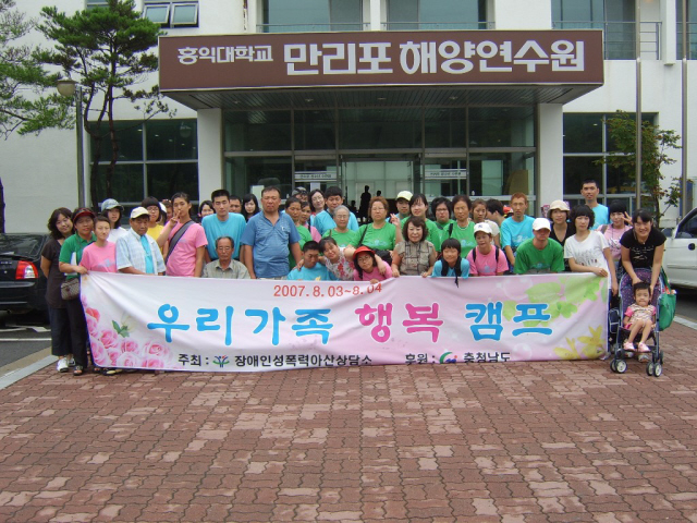 저희 상담소에서는 충청남도지원으로 2007년 8월03일 ~ 04일 만리포해수욕장홍익대수련원으로 즐거운 우리가족행복캠프를 다녀왔습니다.