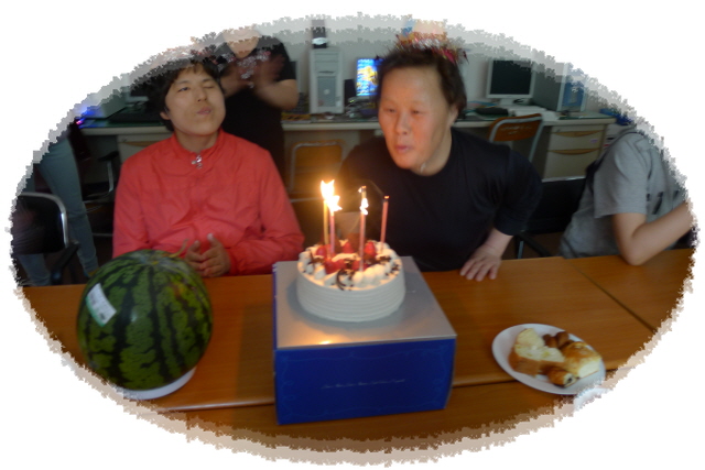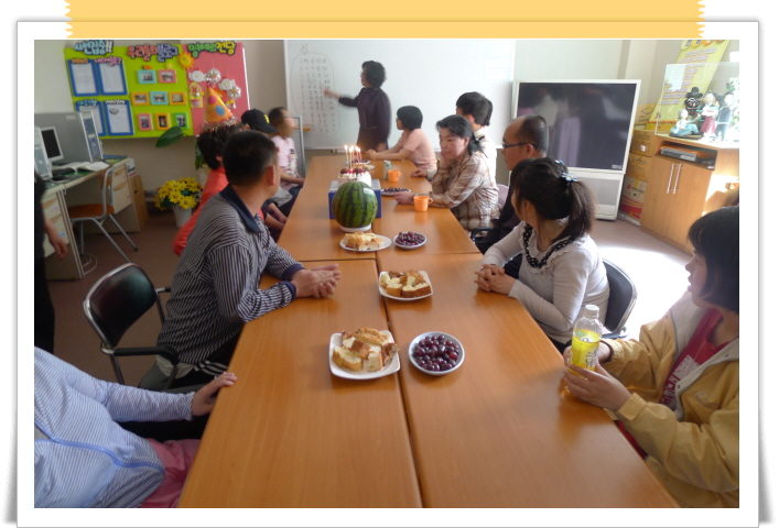 상담소에서는 이용자들의 생일을 맞아 생일축하 파티를 합니다